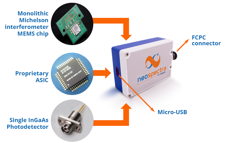 2017年1月24號,一個主要為工業和消費者市場提供集成電路和MEMS解決方案的公司Si-ware Systems(SWS),在洛杉磯推出了一個微型光譜儀NeoSpectra Micro供廣大消費者和工業上使用。該產品像芯片一樣大小,可以直接現場快速的進行材料分析,這樣大大的縮短產品分析時間,也使獲得數據更準確。28 2017-02 -