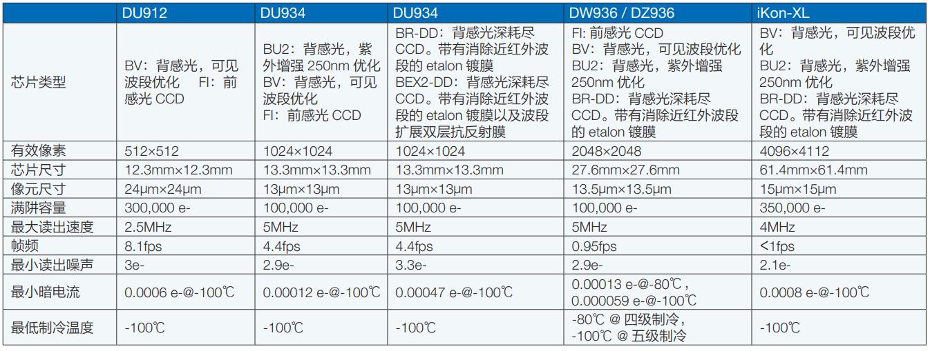 英國(guó)Andor的iKon系列CCD相機(jī)參數(shù):
