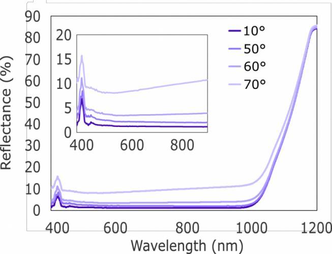 黑硅表面與定制的原子層沉積涂層相結合,極大地提高了感應角度范圍內的表面吸收率,具有極高吸光度的超寬感應角度(> 95% @60°)