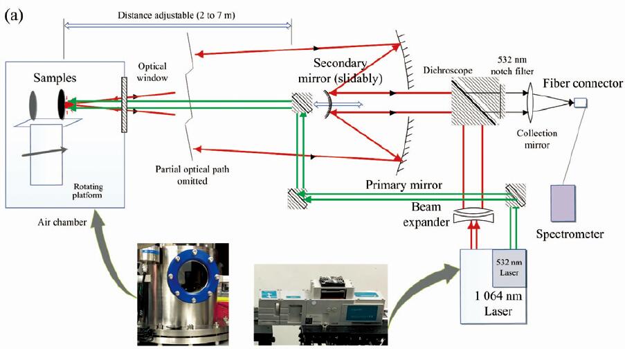 中國科學院萬雄老師設計了一款激光誘導擊穿光譜LIBS+ 拉曼系統在火星模擬環境下礦物樣品的綜合檢測能力,采用卡塞格林望遠鏡結構,遠程脈沖拉曼光譜激發,成功檢測了8 種典型礦物質(孔雀石、藍銅礦、雄黃、文石、方解石、硬石膏和石膏等),實驗結果表明,該系統可以在火星條件下有效分析礦物種類和成分。