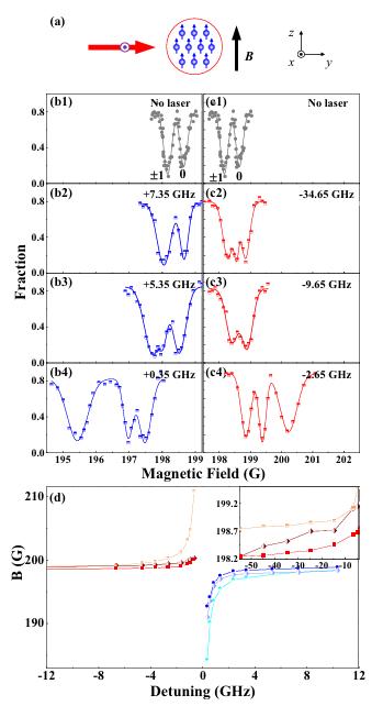 國內關于Feshbach共振的研究也有許多,例如張婧、李東豪教授小組在實驗上成功實現了p波Feshbach共振技術,利用激光實現束縛態的躍遷[9],如圖 3所示。而在聶亮、張越等人的工作中,成功實現了同核和異核Feshbach共振,為模擬量子流體等相互作用提供了理想的平臺[10]。