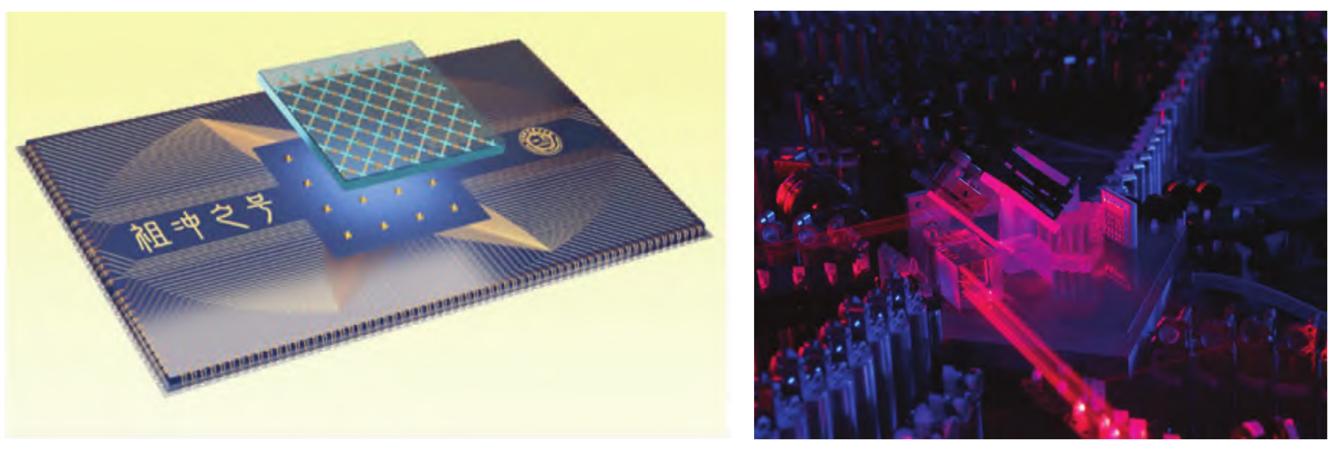 圖 2 “祖沖之號”量子處理器(左)“九章”光量子干涉實物圖(右)圖源:維基百科